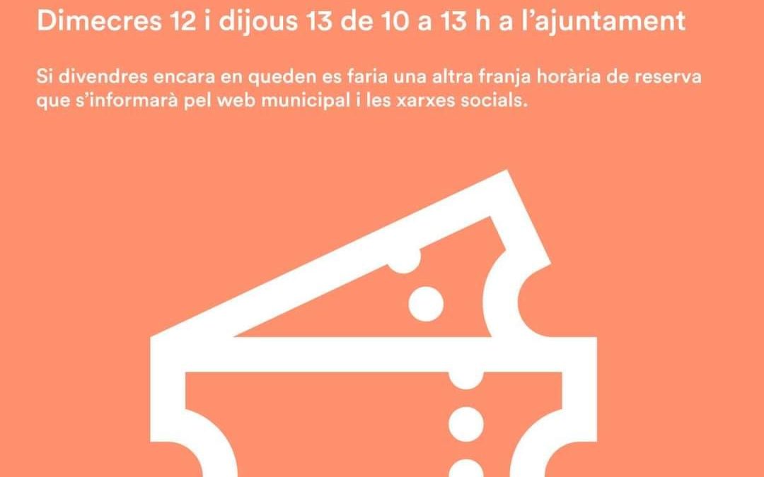 Durant la setmana vinent es podran venir a buscar a l’Ajuntament amb diferents franges horàries, reservant un màxim de 4 entrades per persona i fent un registre d’assistents amb noms, cognoms, DNI i telèfon